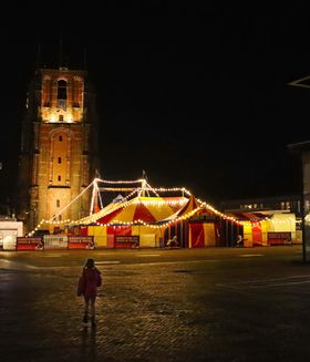 De voorstelling vindt plaats in een prachtig versierde circustent, gevuld met duizenden lichtjes en winterse decoraties.